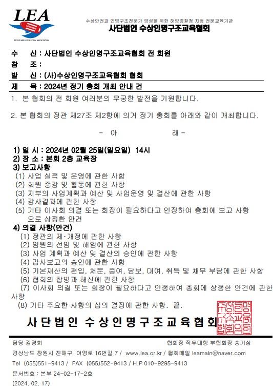 공지 2024년 정기총회 안내 페이지 정보 작성자 사무국1 댓글 0건 조회 2,746회 작성일 24-02-17 15:20 본문 상기와 같이 2024년 정기총회를 개최하오니 회원 여러분들의 많은 관심 부탁드립니다. 목록 이전글2024 임시총회 개최 안내 24.02.29 다음글2022년 연간기부금모금액 및 활용실적명세서 23.08.22
