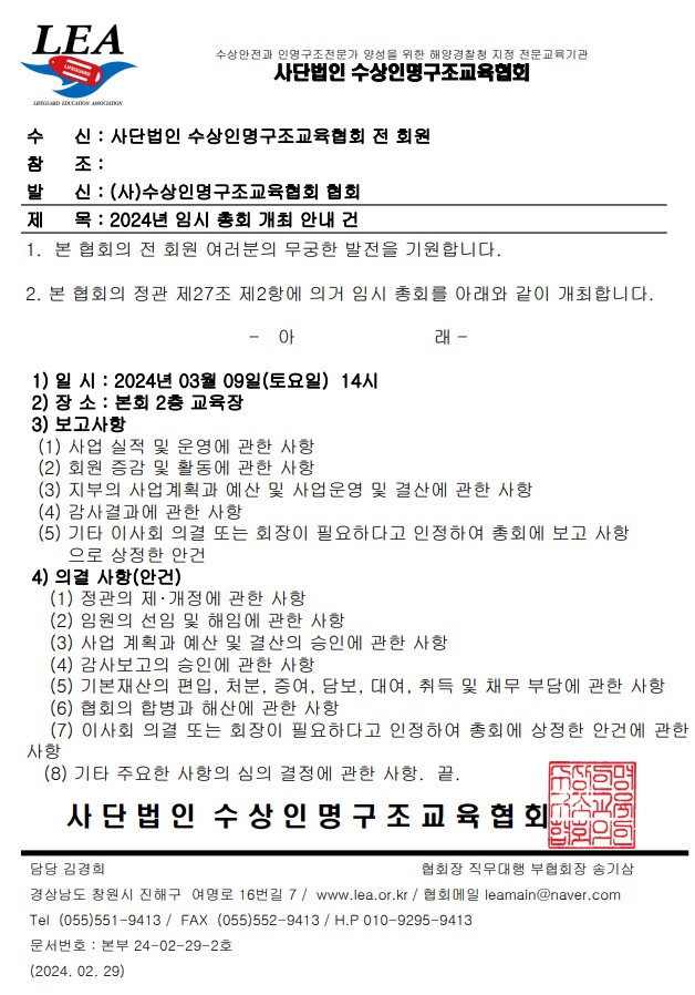 공지 2024 임시총회 개최 안내 페이지 정보 작성자 사무국1 댓글 0건 조회 2,670회 작성일 24-02-29 17:44 본문 상기와 같이 임시총회를 개최합니다. 회원여러분들의 많은 참석 부탁드립니다. 목록 이전글2024년 2차 임시총회 개최 안내 24.03.16 다음글2024년 정기총회 안내 24.02.17