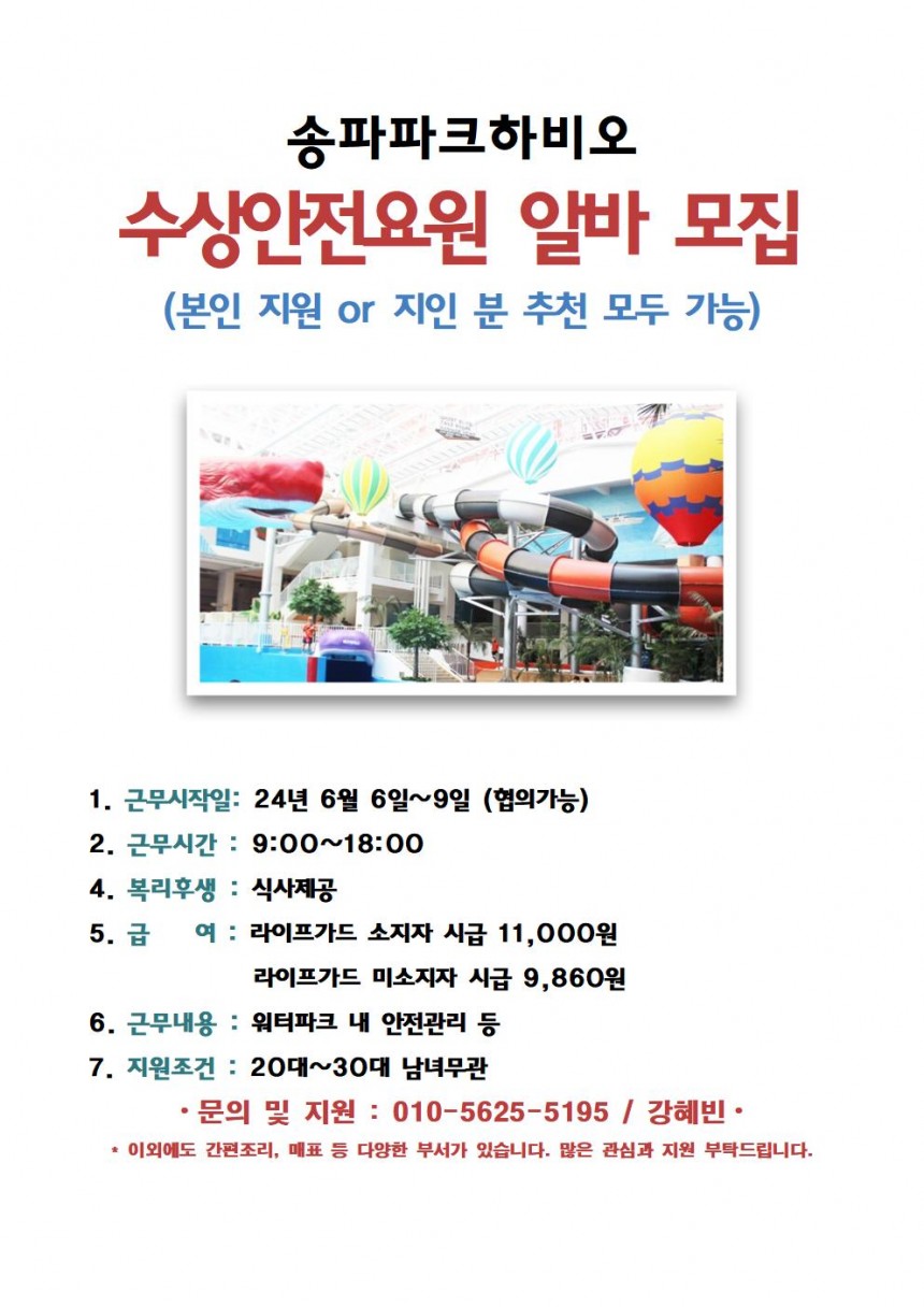 공지 송파구 워터킹덤에서 수상안전요원 채용 중입니다. 페이지 정보 작성자 교육부1 댓글 0건 조회 2,529회 작성일 24-05-30 09:58 본문 송파구 워터킹덤에서 수상안전요원 채용 중입니다. 목록 답변 글쓰기 이전글성동구청 물놀이터 공고 24.06.07 다음글김포시사계절썰매장 기간제근로자(수상인명구조요원 등) 채용 안내 24.05.21 댓글목록 댓글목록 등록된 댓글이 없습니다.