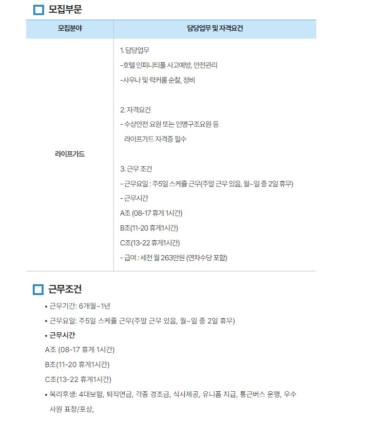공지 네스트 호텔 라이프 가드 채용