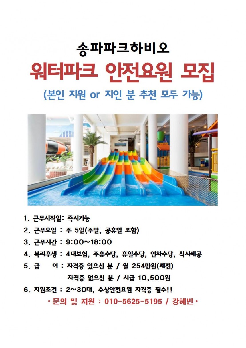 본회 송파파크하비오 워터파크 안전요원 구인 페이지 정보 작성자 총무부 댓글 0건 조회 2,447회 작성일 22-06-04 08:39 본문 송파파크하비오 워터파크 안전요원 자세한 내용 첨부파일 참고 하십시요. 목록 답변 글쓰기 이전글김포시사계절썰매장 수상인명구조요원 모집 관련 22.06.04 다음글워터파크 수상안전요원 계절사원 채용 22.05.24 댓글목록 댓글목록 등록된 댓글이 없습니다.